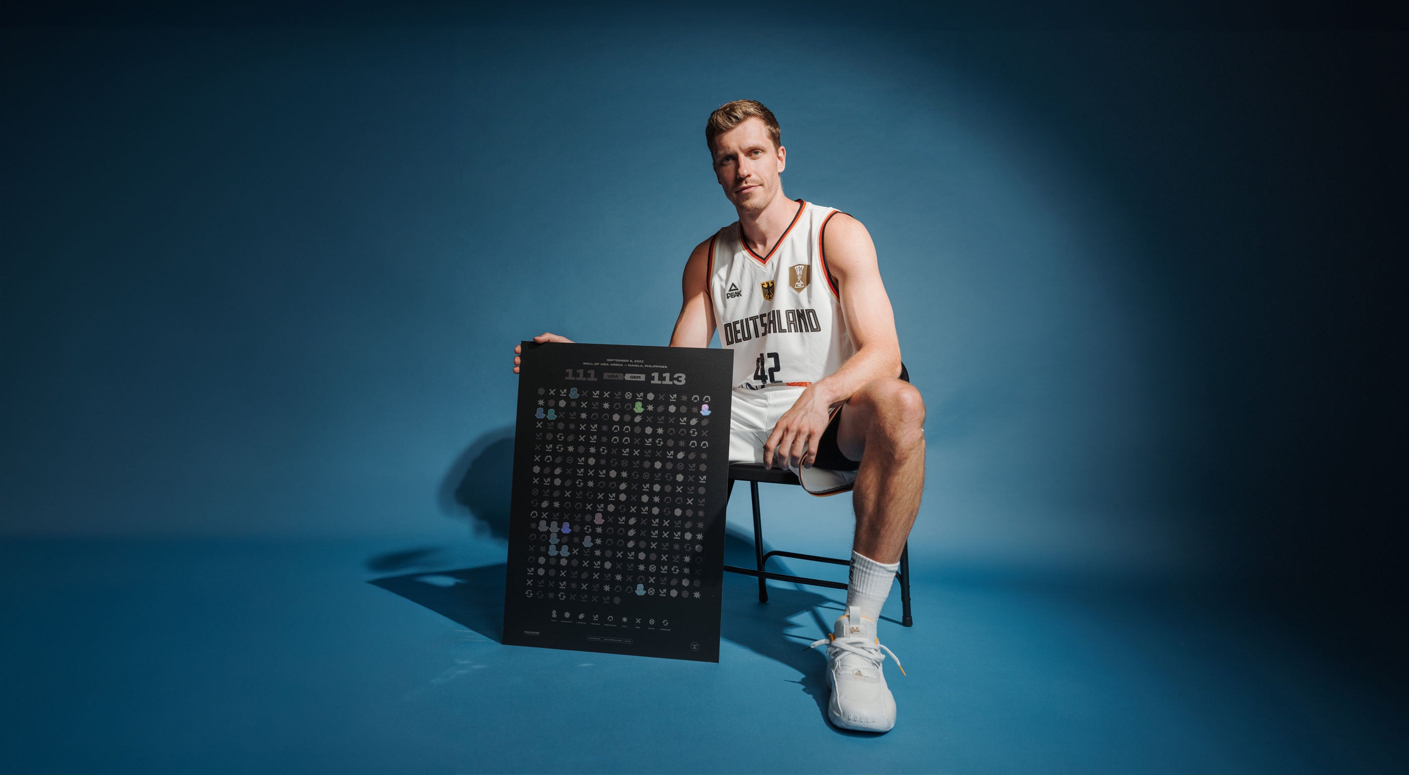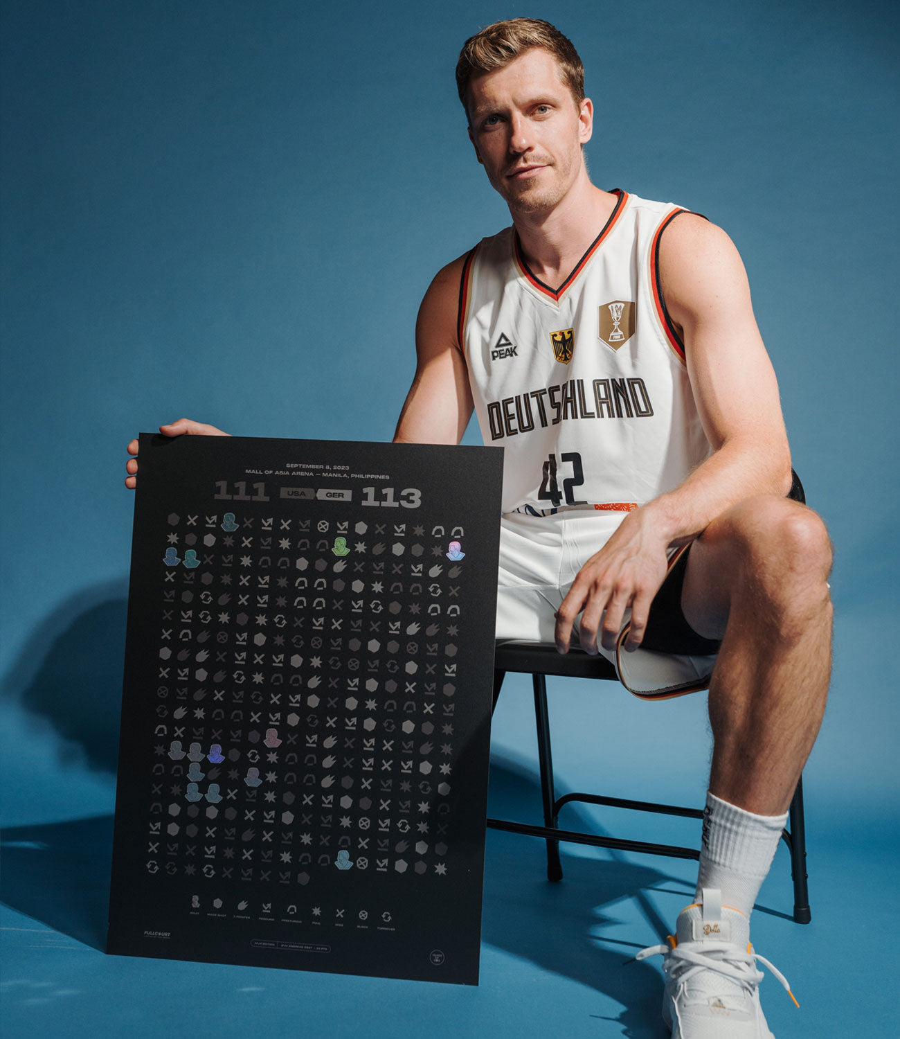 Mit 24 Punkten im Halbfinale führt Andi Obst das deutsche Team ins WM Finale 2023. In dieser limitierten Gameprint Edition haben wir alle Punkte von Andi Obst auf ganz besondere Art verewigt.